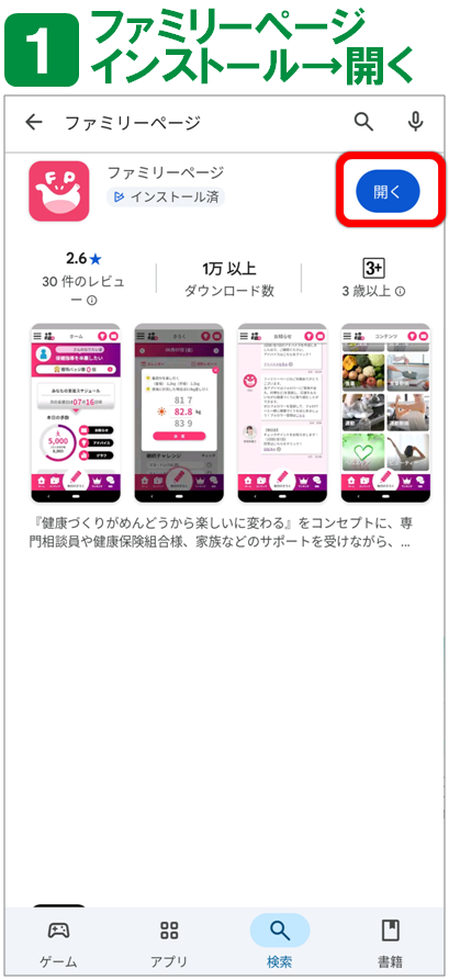 ファミリーページアプリ インストールの流れ