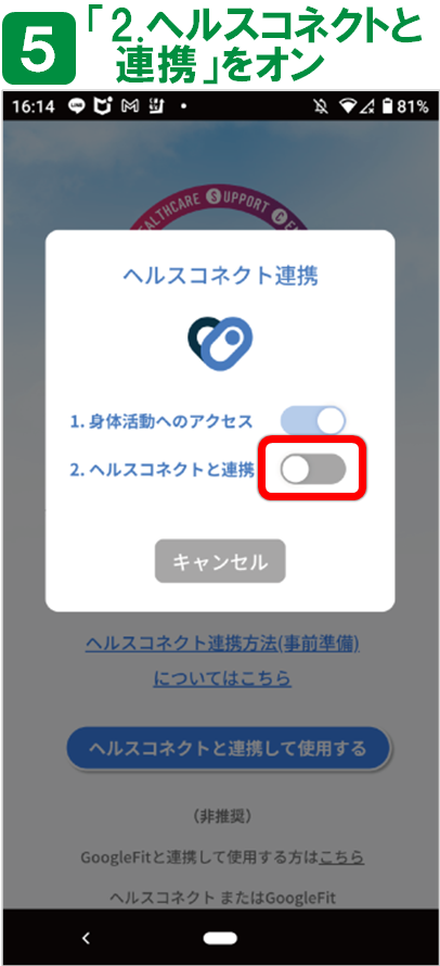 ➍ヘルスコネクトとGoogle Fitを連携